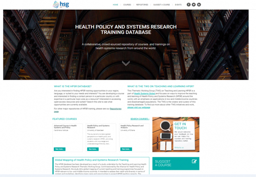 Health systems Global with support from the Alliance for Health Policy and Systems Research, the Wellcome Trust and INIS Communication has launched an open sourced HPSR Training Database. This initiative is complements the Alliance's work to build capacity in health systems and policy research amongst researchers, decision-makers, and implementers. For instance see our work on, Leadership Development for Enhanced Decision-Making, Decision-Maker Led Implementation Research as well as our Grants Programme for Implementation Research
