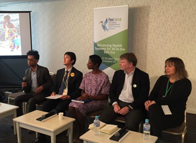 The first panel discussion Domestic Financing for HPSR: Key to UHC brought together as speakers Jeanette Vega, Director, National Chilean Public Health Insurance Agency (FONASA); Abdul Ghaffar, Executive Director of the Alliance HPSR; Bocar Kouyate, Senior Policy Advisor, Ministry of Health, Burkina Faso; Christoph Kurowski, Global Lead, Health Financing, World Bank; and Aku Kwamie, Ghana Health Service.